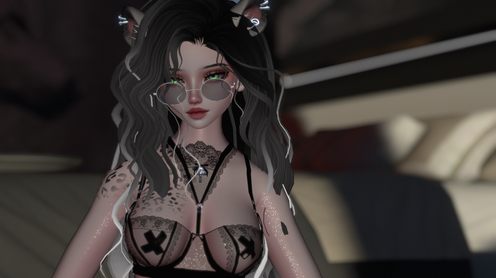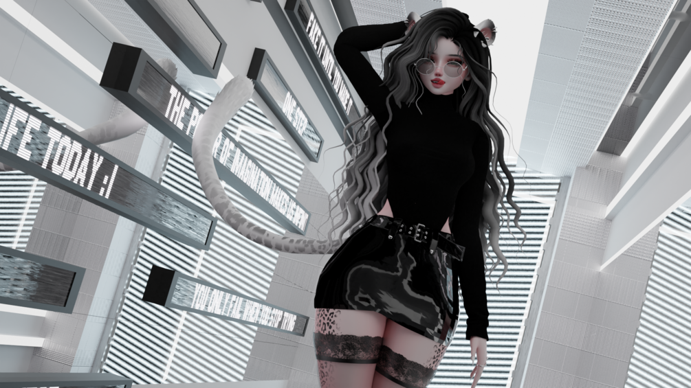 HEAD (Sugs#9795) - BODY (Sugs#9795) - HAIR (Nessy!#7402) - HAIR TEX (Cicieaaa#7777) - AV3 CREATOR (Rafa#0069) - ICON (awmi#6003) - BROWS (Saikura#0006) - MAKEUP (Sivka#3788) - RINGS (Eggly69#6969) - BODYSUIT (AquarianDoll#8246) - UNDERWEAR (CompelledInk#1062) - GLASSES (Suumi#5133) - SKIRT (Peachanas#4352) - HEELS (Bobster#8539) - EARS&TAILS (Cupkake#6666) - TATTOO (Cordelia#6666)
